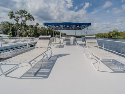 Gather family and friends aboard the 60' 10 sleeper houseboat, Silver Glen, for an unforgettable houseboat adventure on the St. Johns River — relax, explore, and make lasting memories.